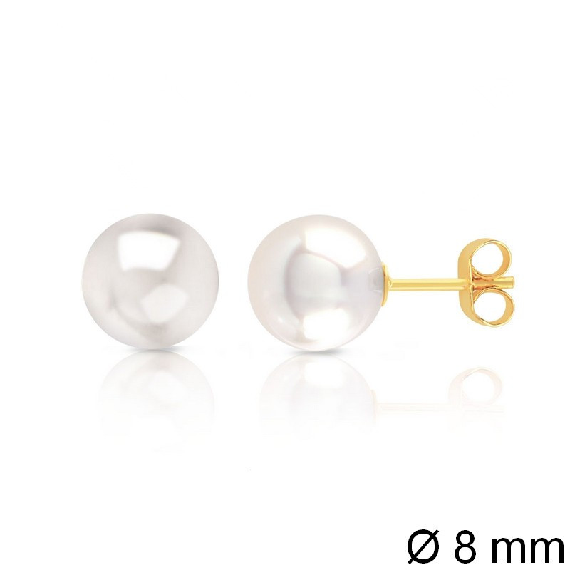 Boucles d’oreilles or jaune 750‰ – Perles de culture d’eau douce 8 mm