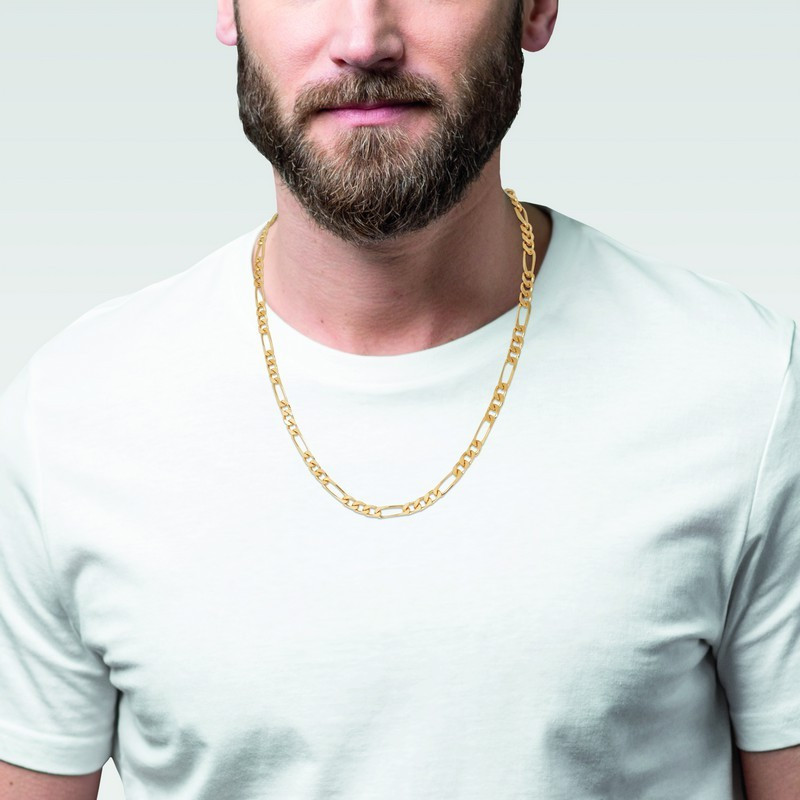 Faites une déclaration de style audacieuse avec notre collier en plaqué or 750°°°, arborant une maille figaro plate 4 faces alternée 1-3. Chaque maillon est finement travaillé pour créer un motif distinctif et élégant, ajoutant une touche de sophistication à votre allure.