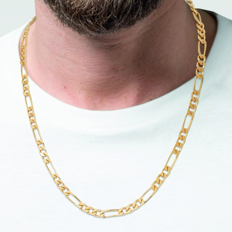 Faites une déclaration de style audacieuse avec notre collier en plaqué or 750°°°, arborant une maille figaro plate 4 faces alternée 1-3. Chaque maillon est finement travaillé pour créer un motif distinctif et élégant, ajoutant une touche de sophistication à votre allure.