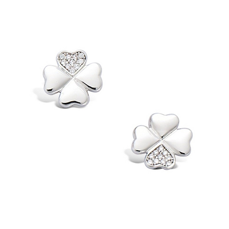 Boucles d'oreilles argent trèfle 4 feuilles dont une cz
