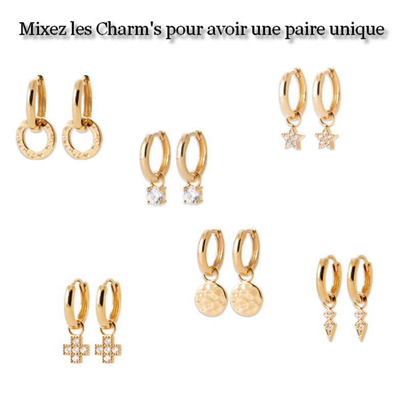 Avec cette créole, mixez les charm's pour avoir une paire unique. Cliquer/décliquer pour personnaliser votre boucle. Simplissime ! Retrouvez tous les charms disponibles ici