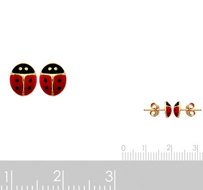 Boucles d'oreilles plaqué or coccinelle email rouge