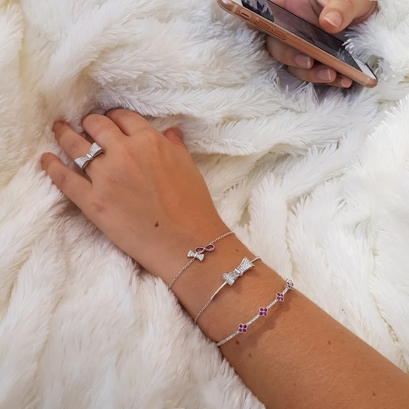 41599 23,00 € Collier argent forme nœud papillon oxydes et 8 de zirconium rose fuchsia Chaine : maille forçat 42 cm Dimension pendentif: 13 x 13 mm Poids : 2.30 grAjouter au panier