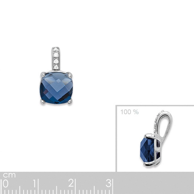 Pendentif argent Carré faceté bleu et petits cz blancs